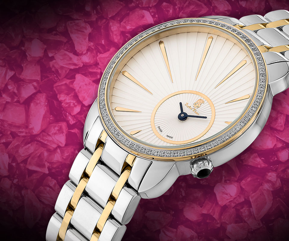 A step in time always creates ripples. Silver, gold and blush pink watches in this collection offer a ripple effect like none other. The concentric effect of the ripples begins from the strap and culminates into the dial almost like a whirlpool of time shaped like a flower. Sparkling crystals ride each wave, while the hands of the dial seem undisturbed by the ripples.